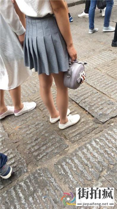 街拍灰色百褶短裙肉色丝袜直腿学生妹子[MOV/137M]