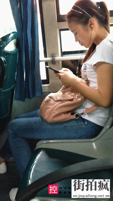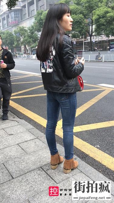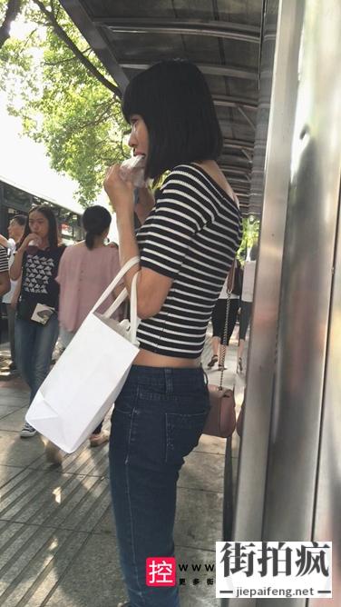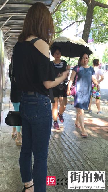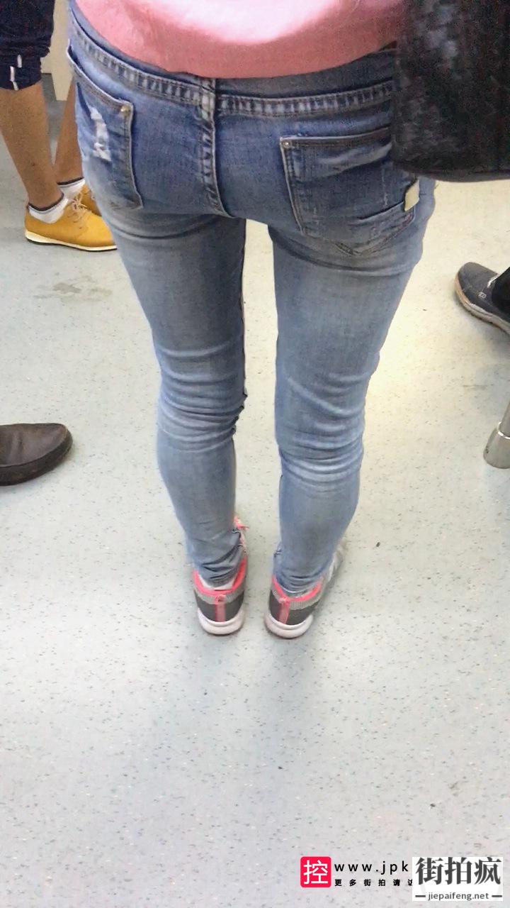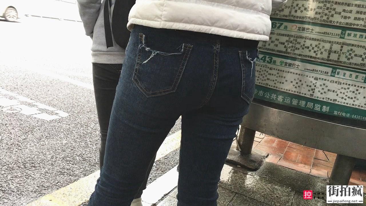 [牛仔裤] 等公交的蓝色紧身牛仔裤饱满圆臀美眉[352M/MOV]