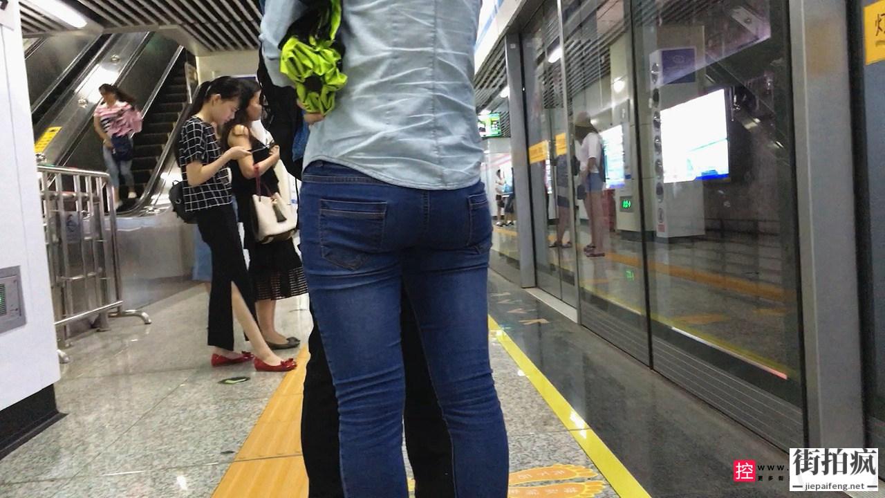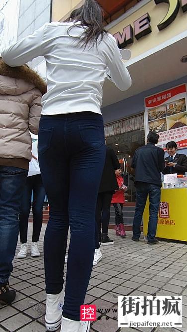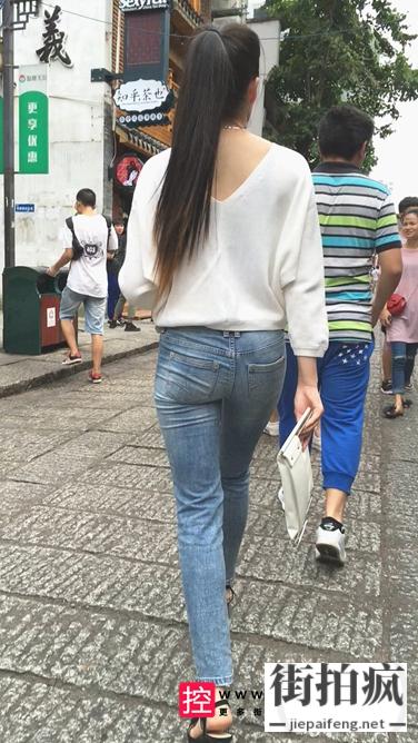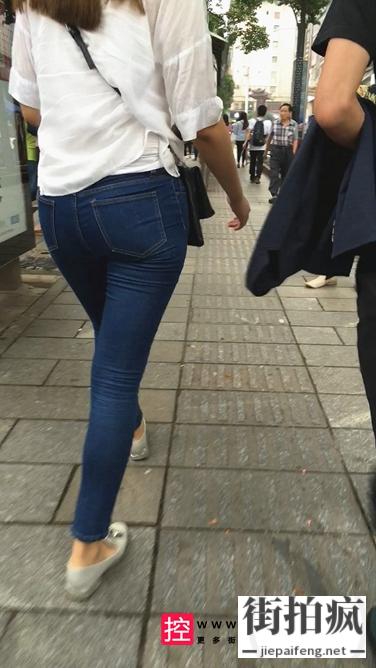 [牛仔裤] 街头跟拍蓝色牛仔裤高挑身材饱满翘臀美眉[282M/MOV]