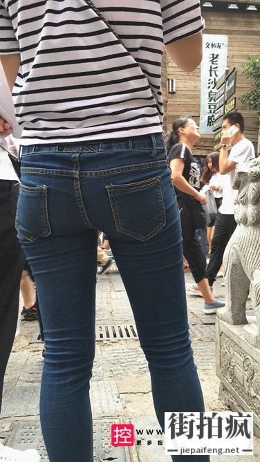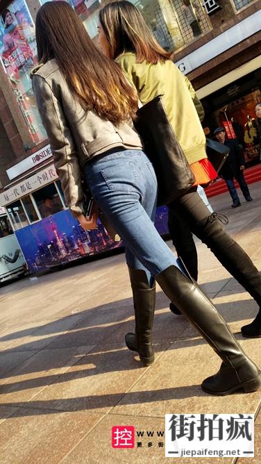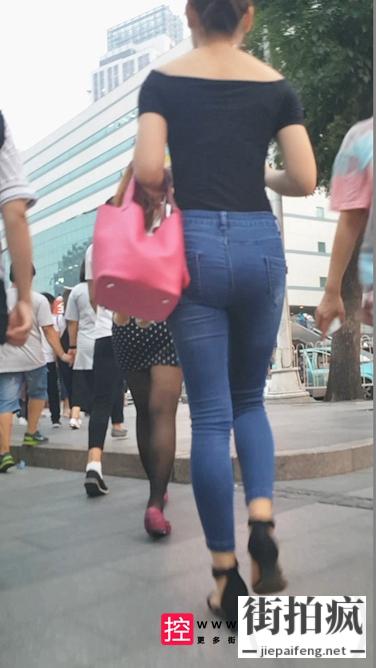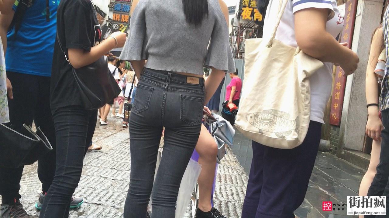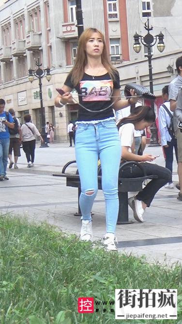 [牛仔裤] 和闺蜜一起逛街的蓝色紧绷牛仔裤翘臀美眉[313M/MOV]