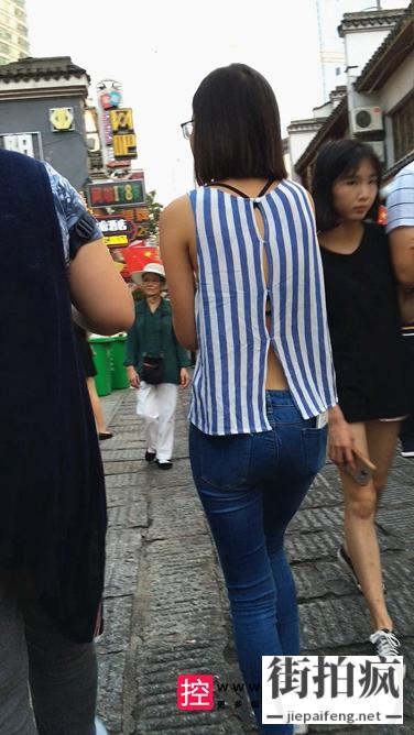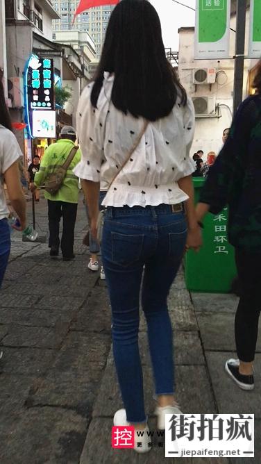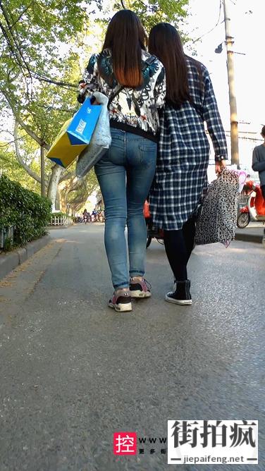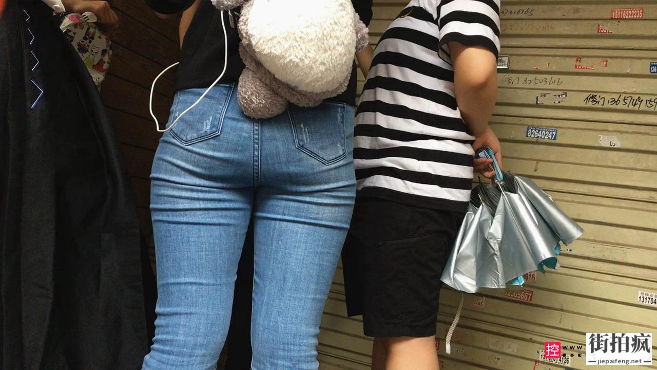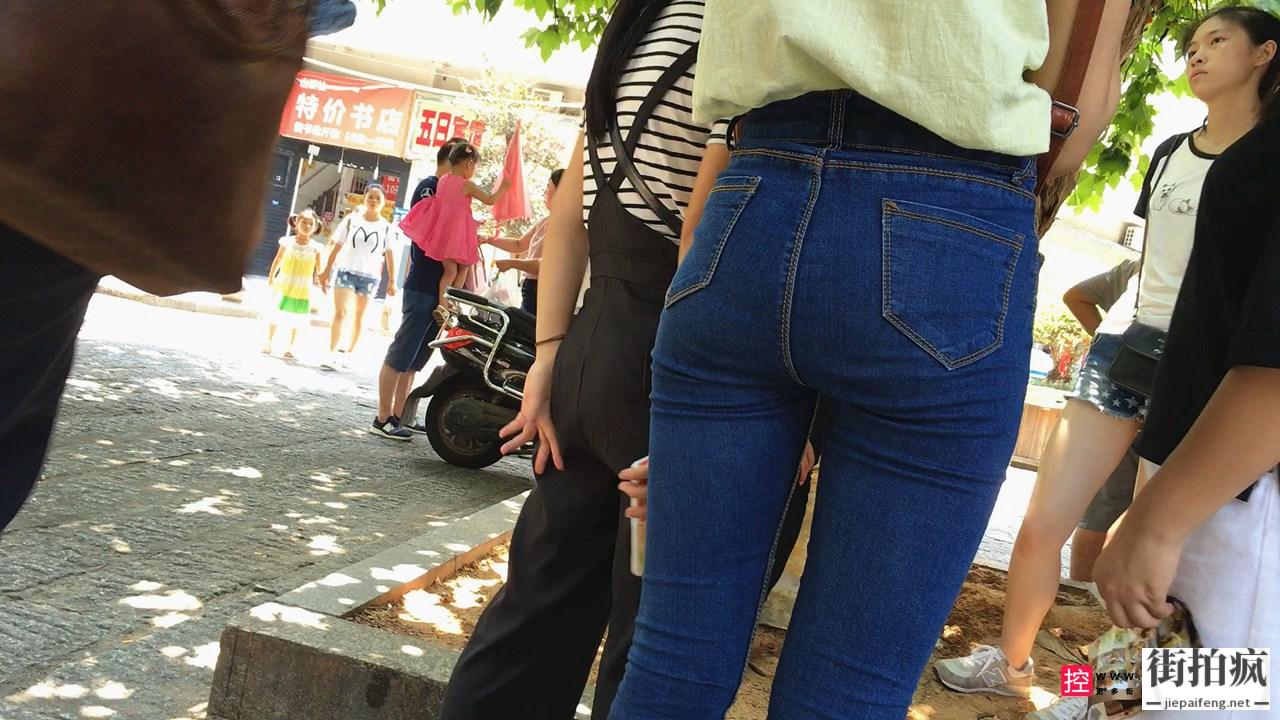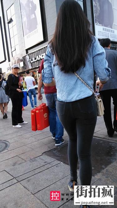 [牛仔裤] 街拍紧身牛仔裤圆润翘臀小妹[550M/MOV]