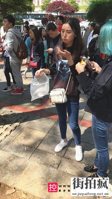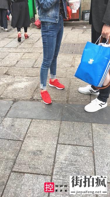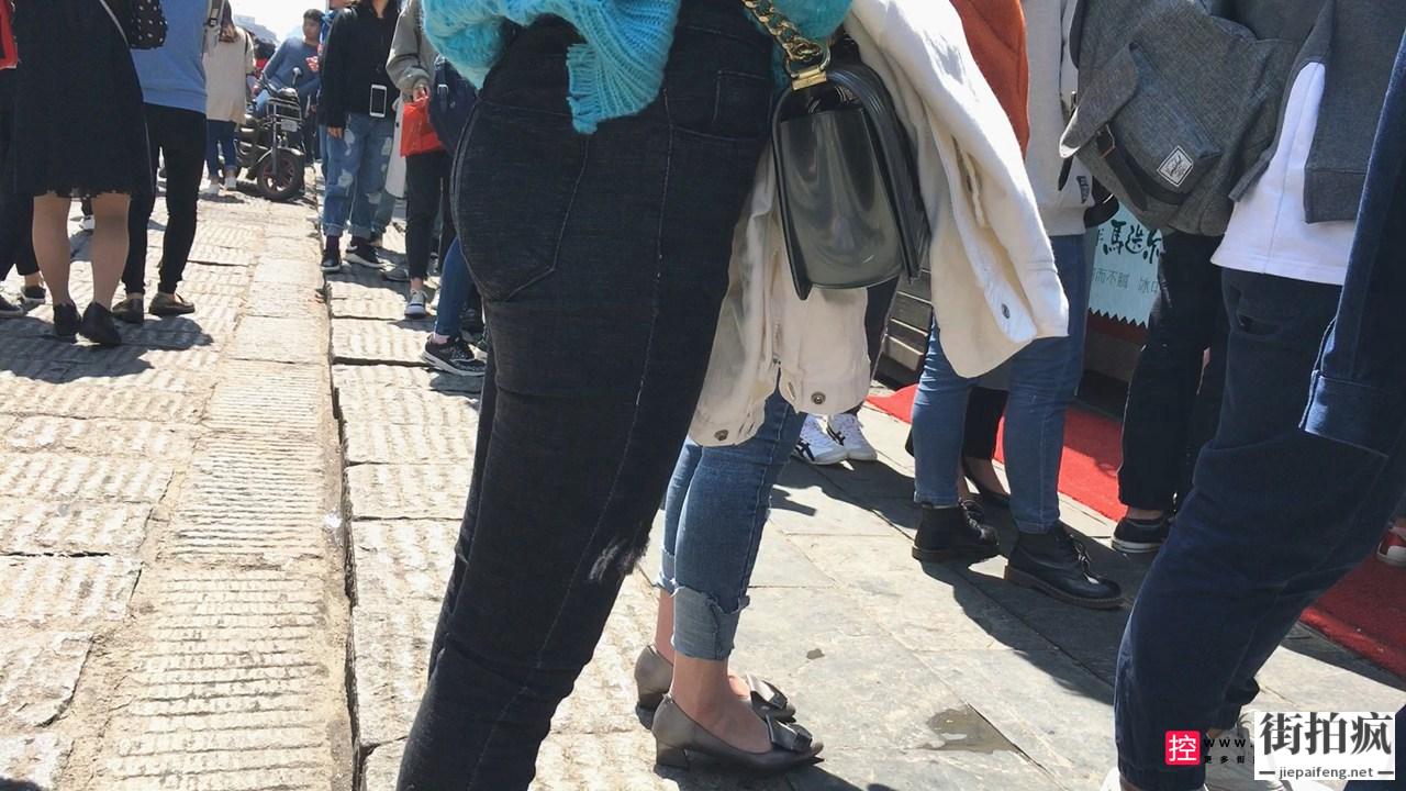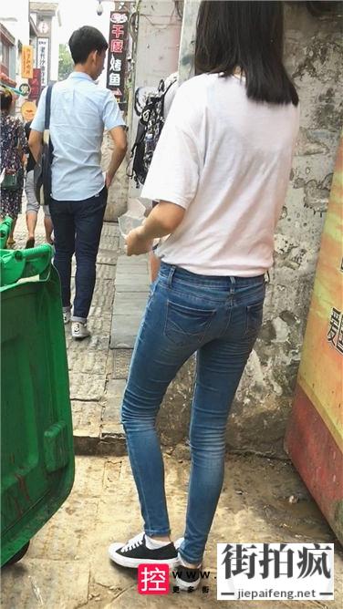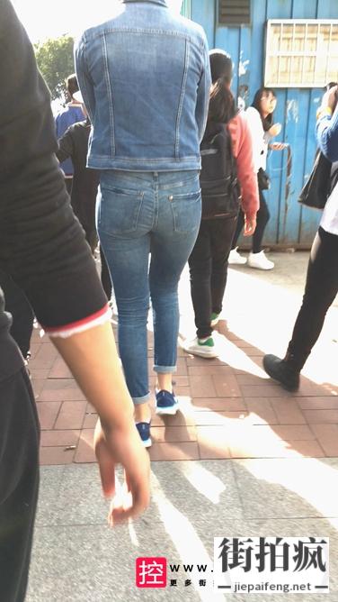 [牛仔裤] 街拍蓝色紧身牛仔裤眼镜美眉[331M/MOV]