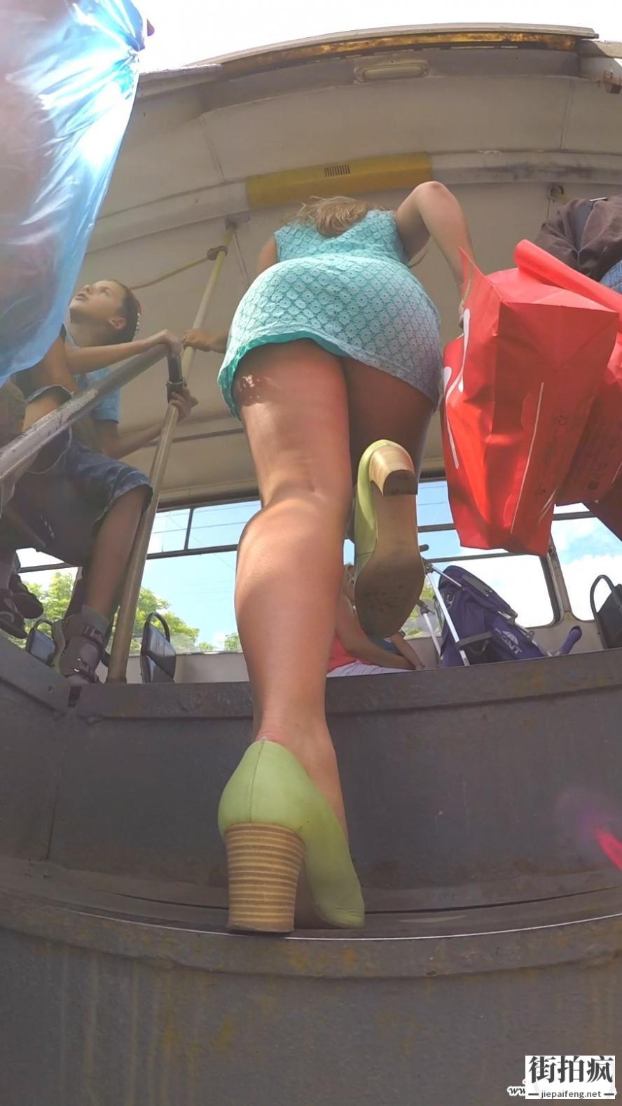 绿色连衣裙大屁股丰满身材美眉登公交车[MP4/516M]