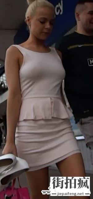 没有带胸罩的金发白色包臀裙性感洋妞[MTS/196M]