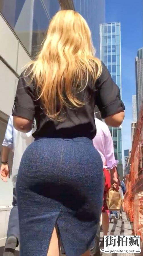 跟拍金发性感大屁股牛仔包臀裙洋妞[MP4/381M]