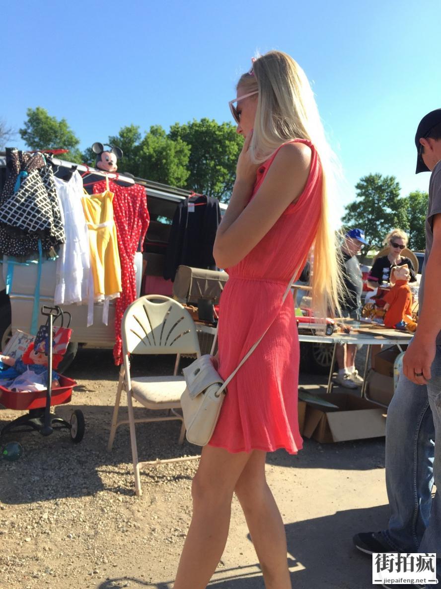 跟拍金发美女黑色连衣裙[MP4/253M]
