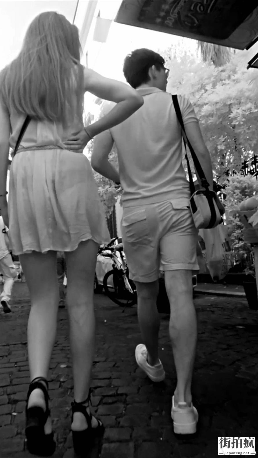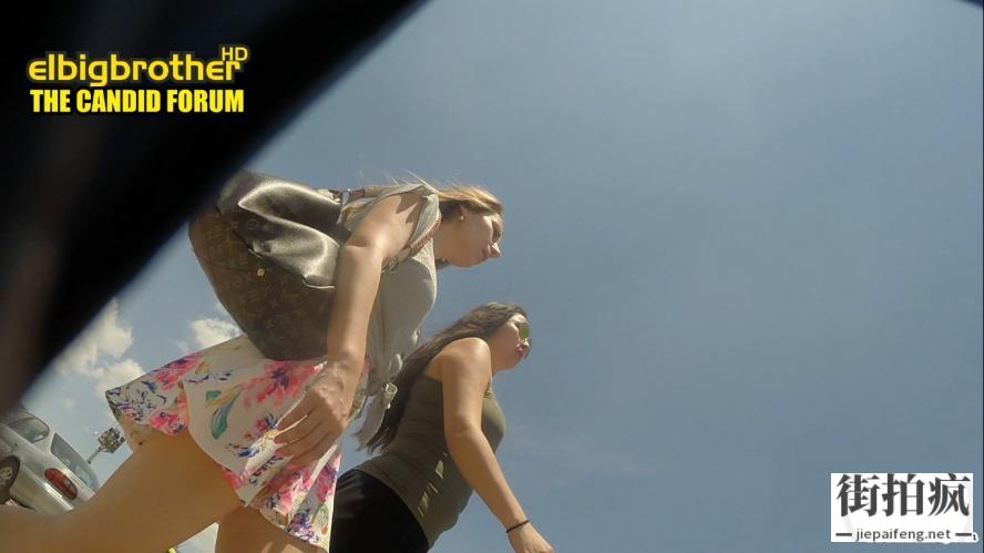 街拍粉色花裙洋妞过马路[MP4/473M]