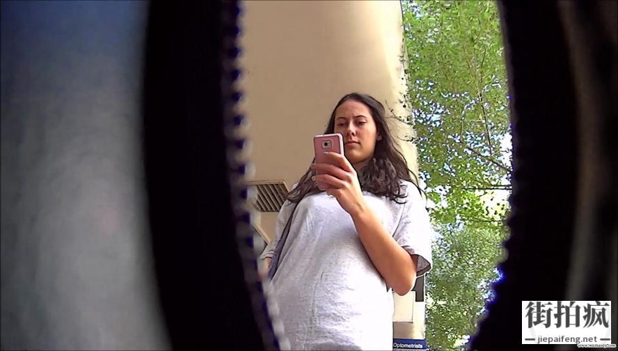 街拍玩手机的灰色连衣裙洋妞[MP4/119M]