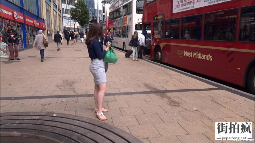 街拍洋妞灰色紧身连包臀裙丰臀美腿[MP4/481M]