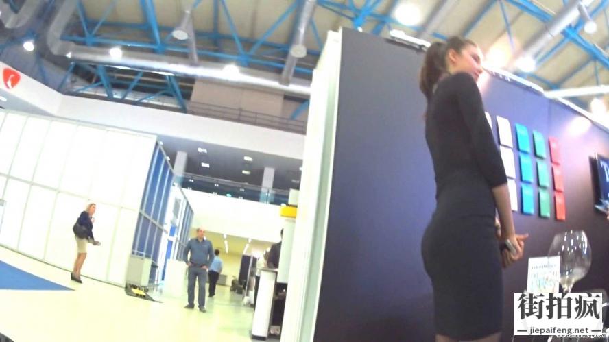 展会黑色连衣包臀裙高挑OL性感翘臀[MP4/215M]...