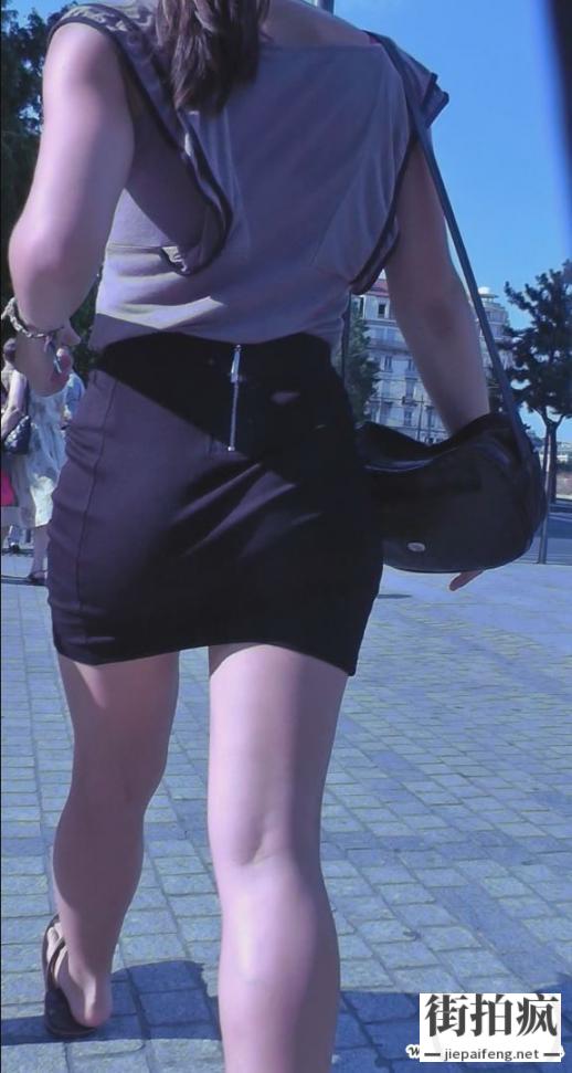 街拍洋妞黑色包臀短裙性感翘臀[MP4/601M]