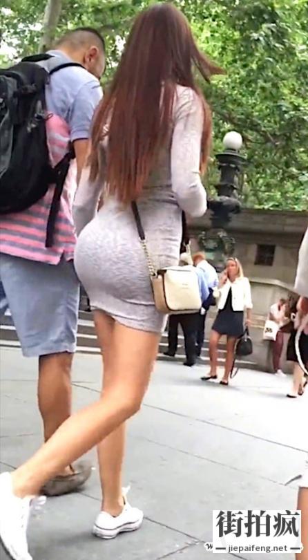 街拍灰色连衣包臀裙长发美少妇极品饱满丰臀[MP4/95M]