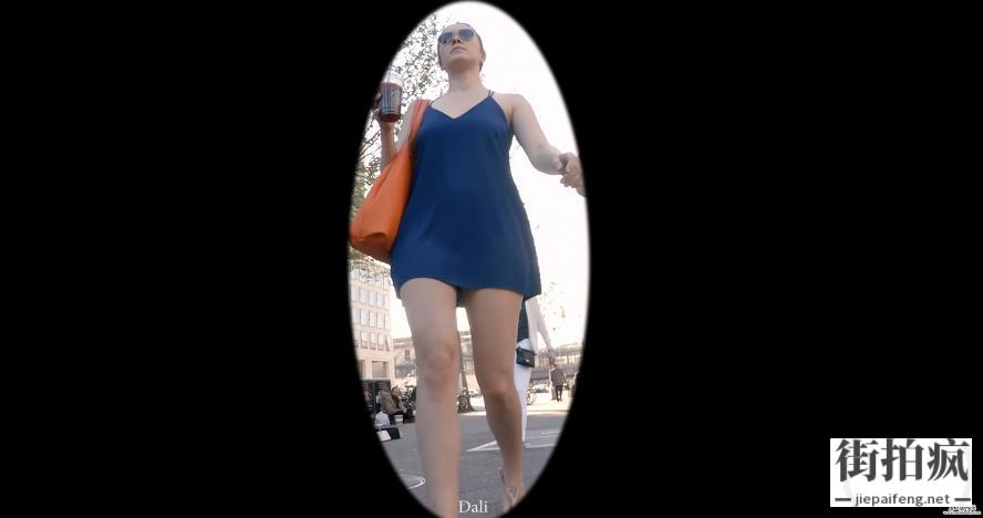 街拍蓝色吊带连衣裙白皙美腿美少妇[MP4/276M]