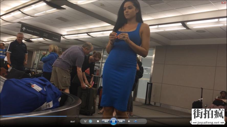 街拍蓝色吊带连衣裙白皙美腿美少妇[MP4/276M]...