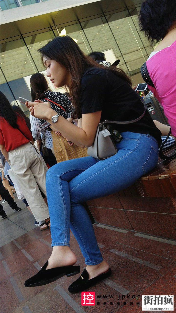 街拍黑色牛仔短裙漂亮长发洋妞[MP4/209M]