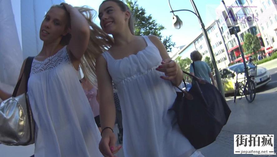 街拍两个白色连衣裙金发美女微透[MP4/253M]