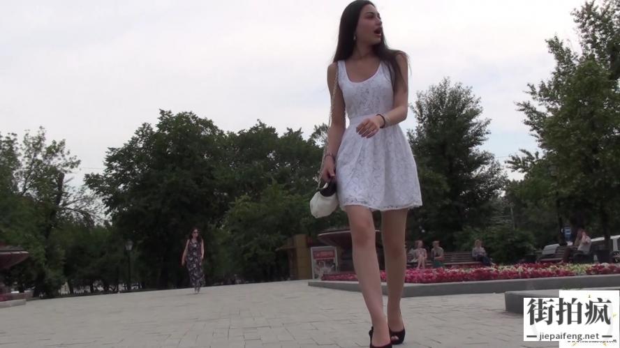 街拍白色蕾丝连衣裙漂亮长发洋妞美腿高跟[MP4/714M] ...