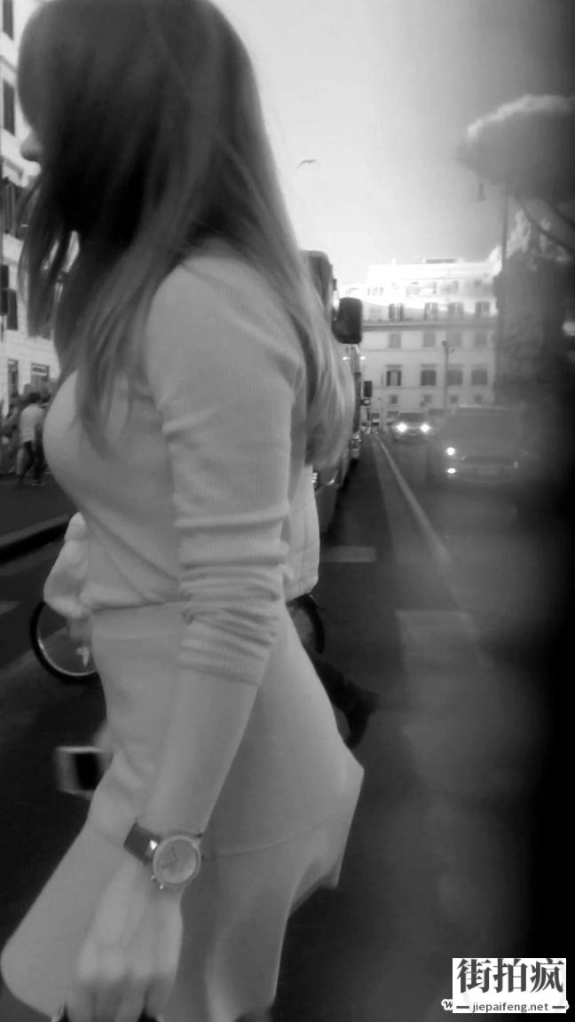 街拍白色连衣裙卷发洋妞饱满大屁股紫色[MP4/239M]