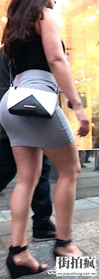 街拍灰色紧身包臀裙洋妞性感宽臀[MP4/288M]