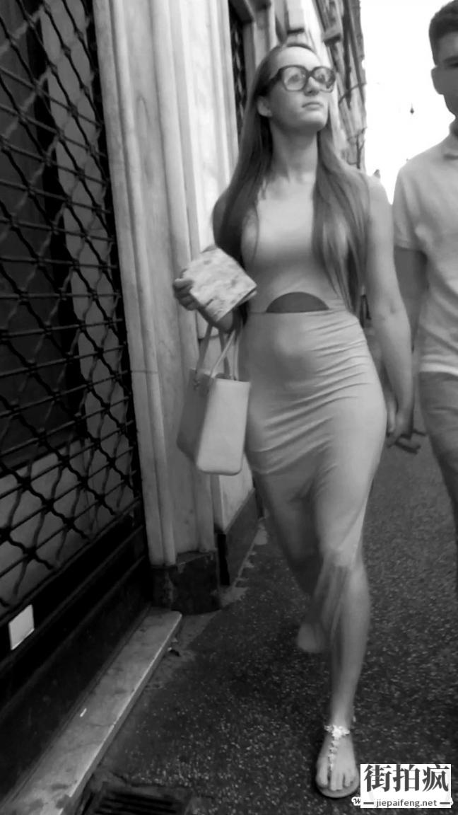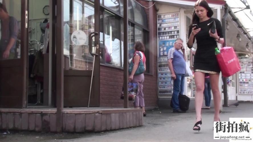 街拍黑色紧身连衣裙俄罗斯洋妞性感身材和翘臀[MP4/263M]