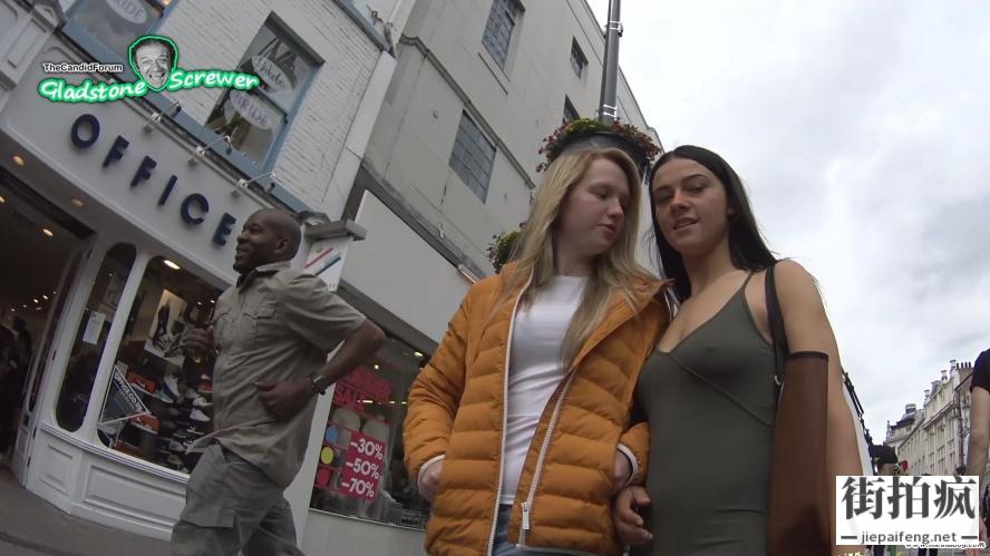 街拍灰色和黑色连衣包臀裙高挑身材两个洋妞[MP4/471M]