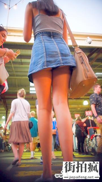 街拍性感长腿蓝色牛仔短裙年轻漂亮美眉[MP4/200M]