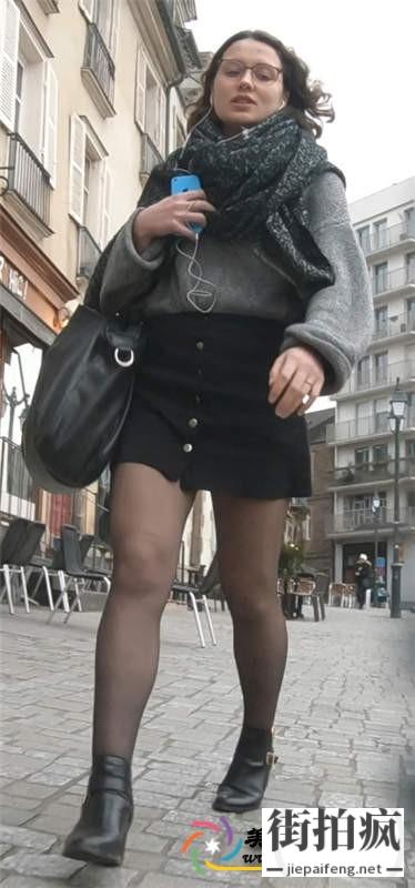 街拍黑色短裙金发漂亮洋妞性感白腿[MP4/1.48G]