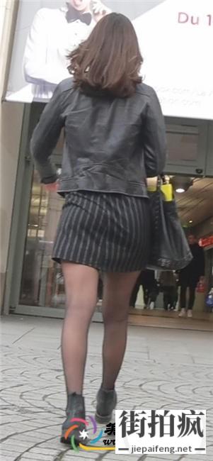 街拍条纹包臀短裙黑丝OL洋妞[MP4/320M]
