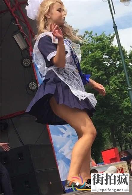 街拍蓝色女仆短裙金发漂亮洋妞[MP4/202M]