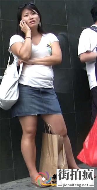 街拍蓝色包臀短裙亚洲丰满少妇[MP4/344M]