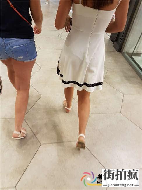 街拍白色连衣短裙性感美腿洋妞[MP4/98M]