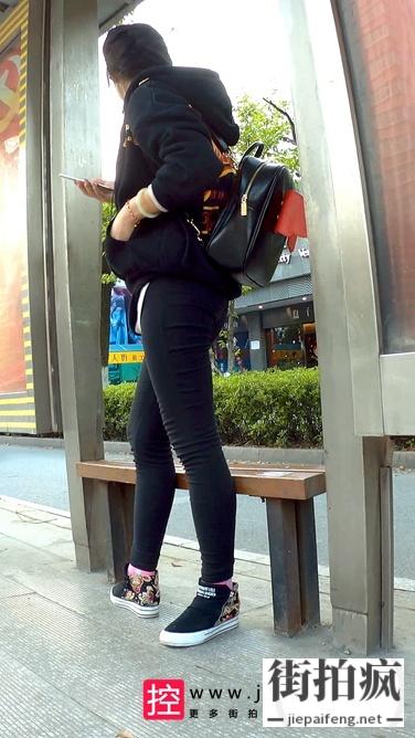 [心花摄大师] 等公交的黑衣紧身裤长发小妹[325M/MP4]