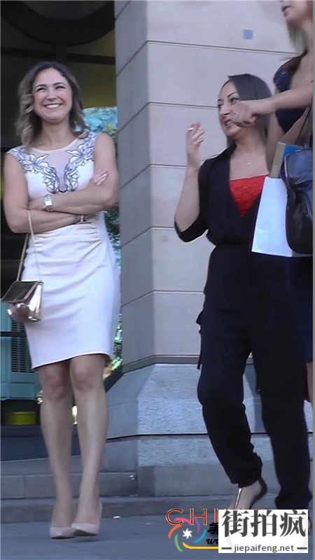街拍白色连衣包臀短裙高跟美腿OL少妇[MP4/128M]