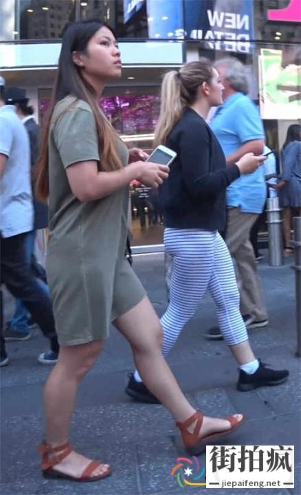 街拍绿色连衣短裙亚洲美眉性感翘臀[MP4/751M]...