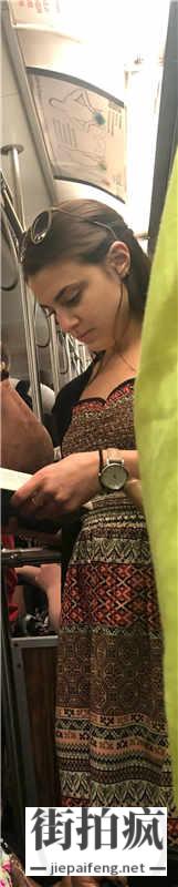 地铁近拍花连衣短裙洋妞性感丰臀[MP4/761M]