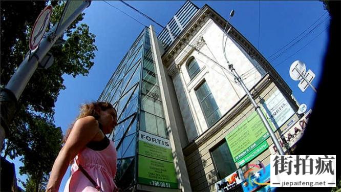 街拍金发俄罗斯洋妞包臀超短裙性感高跟长腿[MP4/803M]
