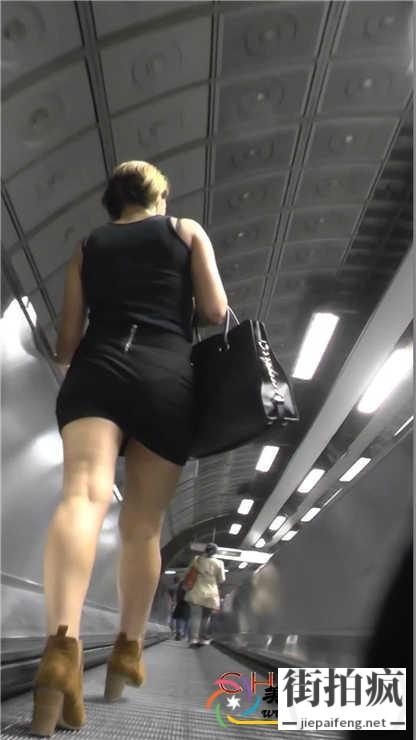 地铁跟拍黑色连衣包臀短裙金发少妇高跟白腿[MP4/164M]...