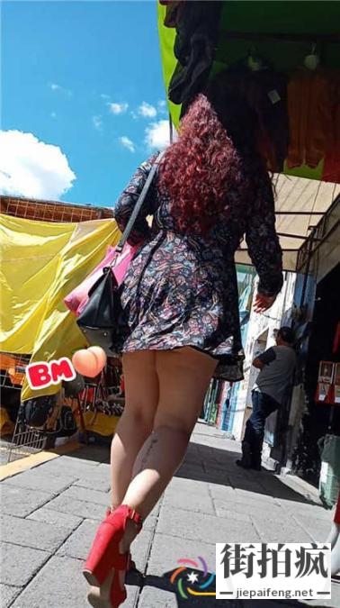 街拍花连衣裙红色高跟少妇性感白腿[MP4/149M]