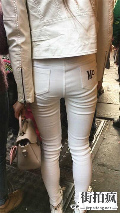 街拍白色紧身裤翘臀美眉[MP4/762M]