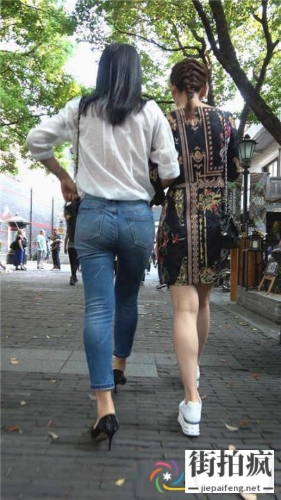 街拍蓝色紧身牛仔裤美眉[366M]...