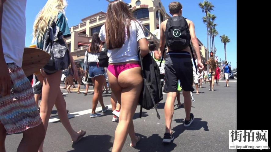 街拍白色丁字比基尼大胸长发洋妞极品圆润饱满翘臀[MP4/568M]