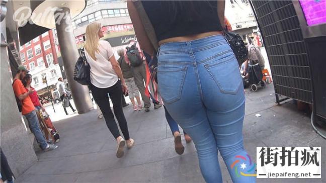 街拍蓝色紧绷牛仔裤饱满圆润大屁股洋妞[MP4/445M]...