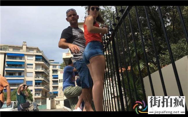 街拍紧绷蓝色牛仔热裤少妇性感翘臀[MP4/379M]