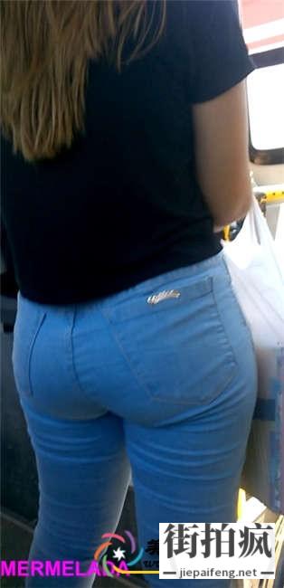 蓝色紧绷牛仔裤金发美眉极品性感饱满圆臀[MP4/171M]