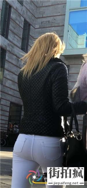 街拍白色紧身裤漂亮金发美女极品性感圆润翘臀[MP4/538M]