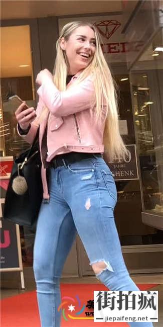 街拍蓝色紧绷牛仔裤金发美眉极品圆润翘臀[MP4/570M]...