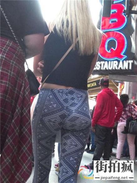 街拍图案紧身打底裤金发洋妞极品饱满圆润丰臀[MP4/377M]