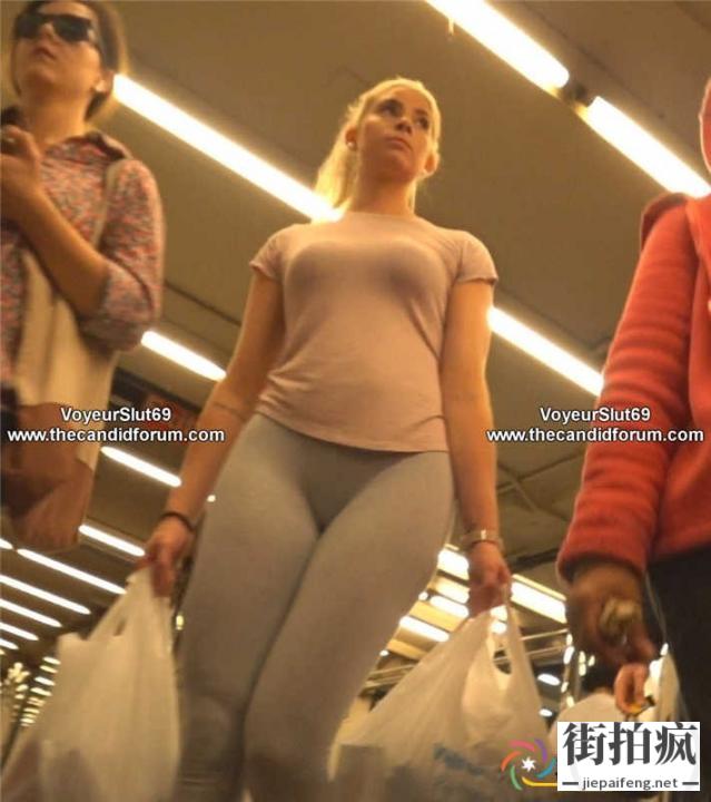 街拍灰色紧身打底裤金发漂亮美女性感饱满翘臀[MP4/578M]