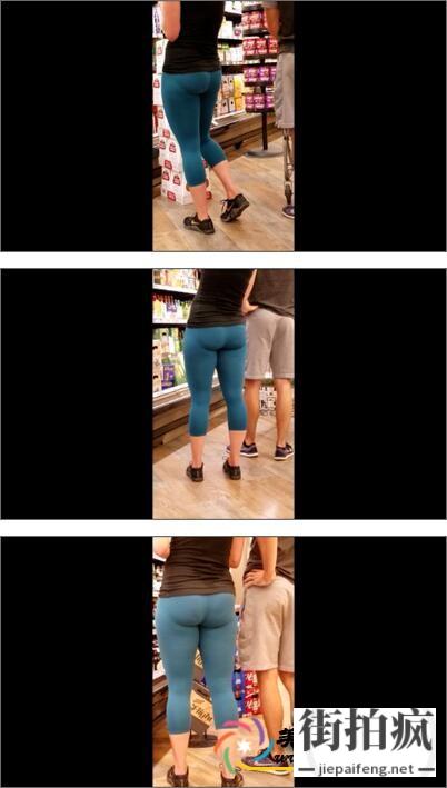 超市购物的蓝色紧身打底裤洋妞性感圆翘臀[MP4/400M]