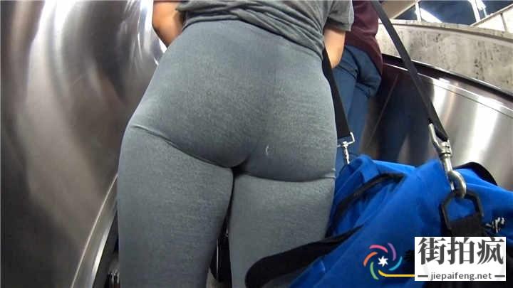 街拍灰色紧身打底裤洋妞极品性感圆润翘臀[MP4/970M]